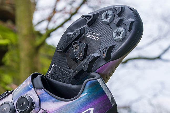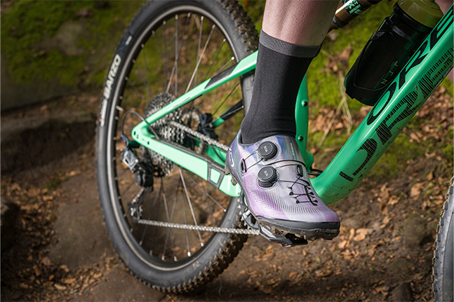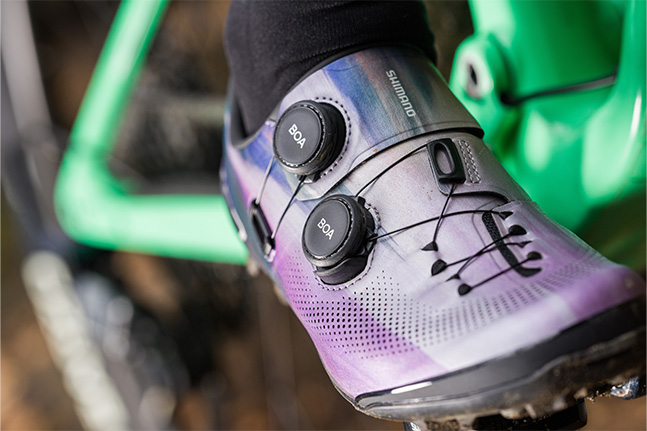 Zaprojektowane do wyścigów buty XC703 posiadają ulepszony system dopasowania BOA® z dwoma kompaktowymi pokrętłami L6 typu Z oraz niskoprofilowy system sznurowania na krzyż, co zapewnia idealne dopasowanie. Wzmacniana karbonem niskoprofilowa podeszwa środkowa stabilizuje stopę, umożliwiając bardziej wydajne pedałowanie, a przyczepna gumowa podeszwa Ultread z demontowalnymi kolcami gwarantuje doskonałą przyczepność podczas prowadzenia roweru w błocie i nierównym terenie.