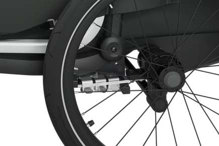 Dla większej wszechstronności, Thule Chariot Cab jest wyposażony w kółka spacerowe, które umożliwiają łatwe przełączanie między trybem jazdy na rowerze a spacerem. Jest także kompatybilny z zestawami multisportowymi, takimi jak zestaw terenowy Thule Chariot i zestaw do narciarstwa biegowego Thule Chariot (sprzedawane oddzielnie), co pozwala na łatwe wykonanie różnych aktywności. Mimo że radzi sobie na trudniejszych ścieżkach, najlepiej nadaje się jako niezawodna, codzienna przyczepka do miejskiego i podmiejskiego środowiska.