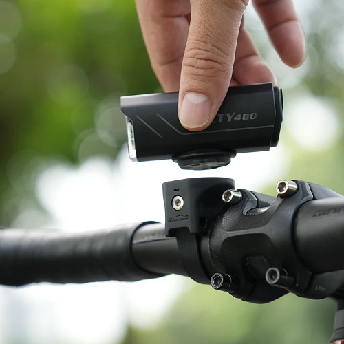 Dzięki mocowaniu ćwierćobrotowemu lampkę można szczelnie zamontować na kasku, kierownicy lub pod kamerą GoPro.