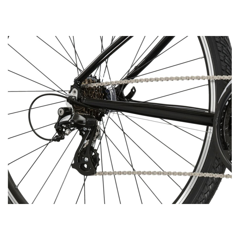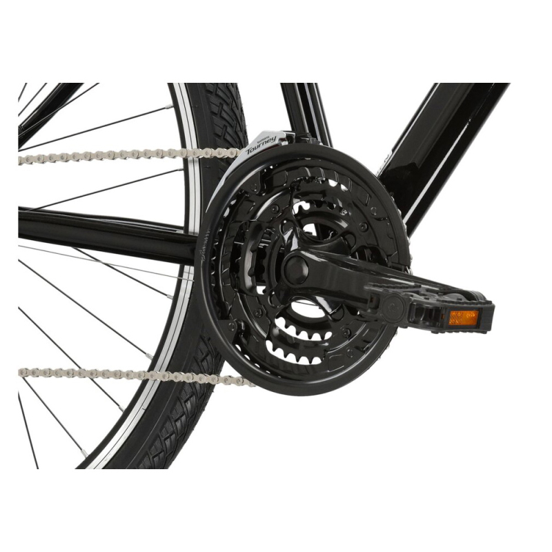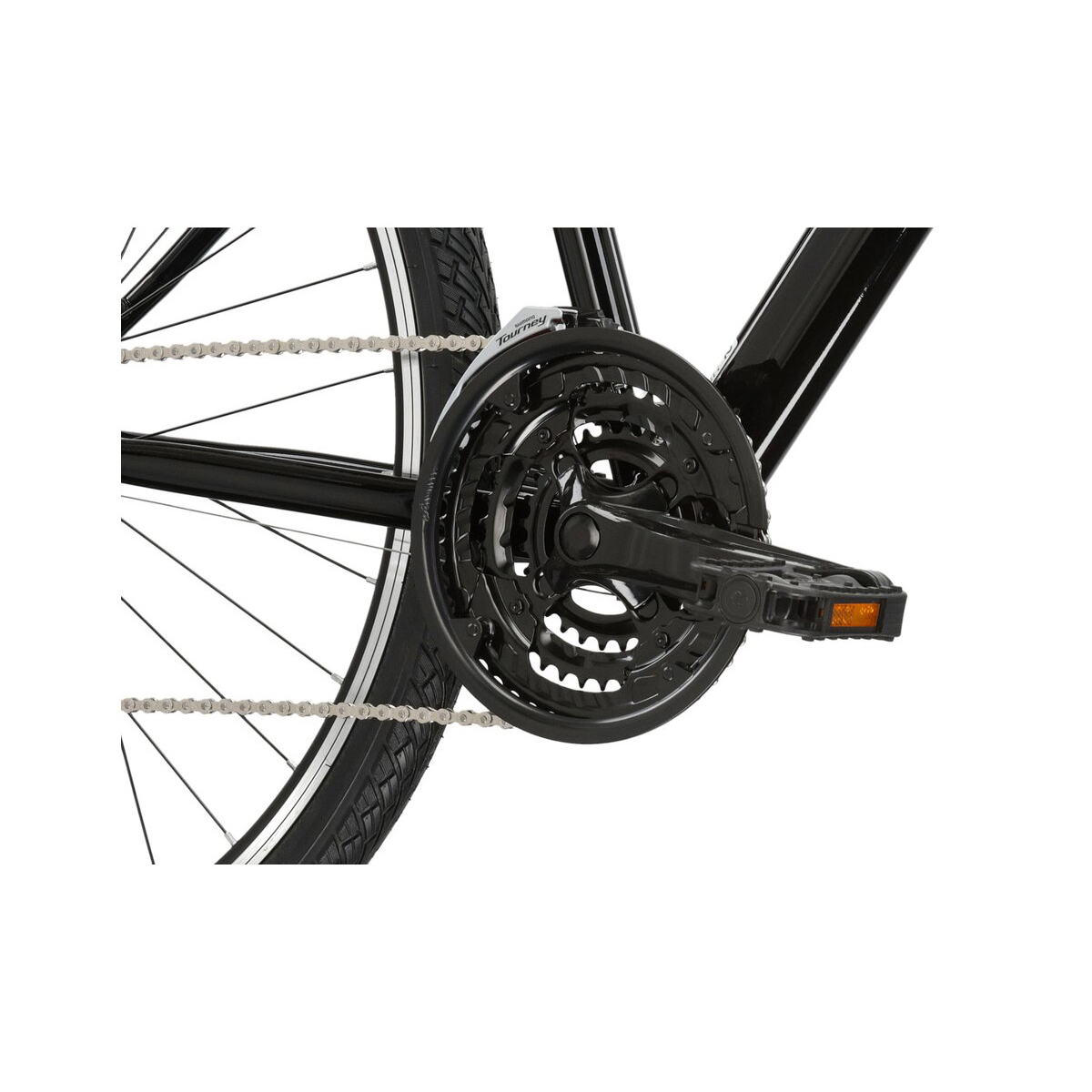 Kross Evado 2.0 został wyposażony w osprzęt Shimano. Japoński producent stworzył manetki, przerzutki oraz kasetę idealnie dostosowane do przemierzania zarówno miasta, jak i leśnych ostępów. Napęd to tylna przerzutka Shimano Altus M310, która zapewni Ci obsługę 7 biegów, co przy wsparciu trzyrzędowej korby daje 21 przełożeń. Taka konfiguracja pozwoli Ci dobrać odpowiednią kadencję do aktualnej sytuacji na drodze, łatwo pokonywać podjazdy oraz rozwinąć wysokie prędkości na płaskich odcinkach.