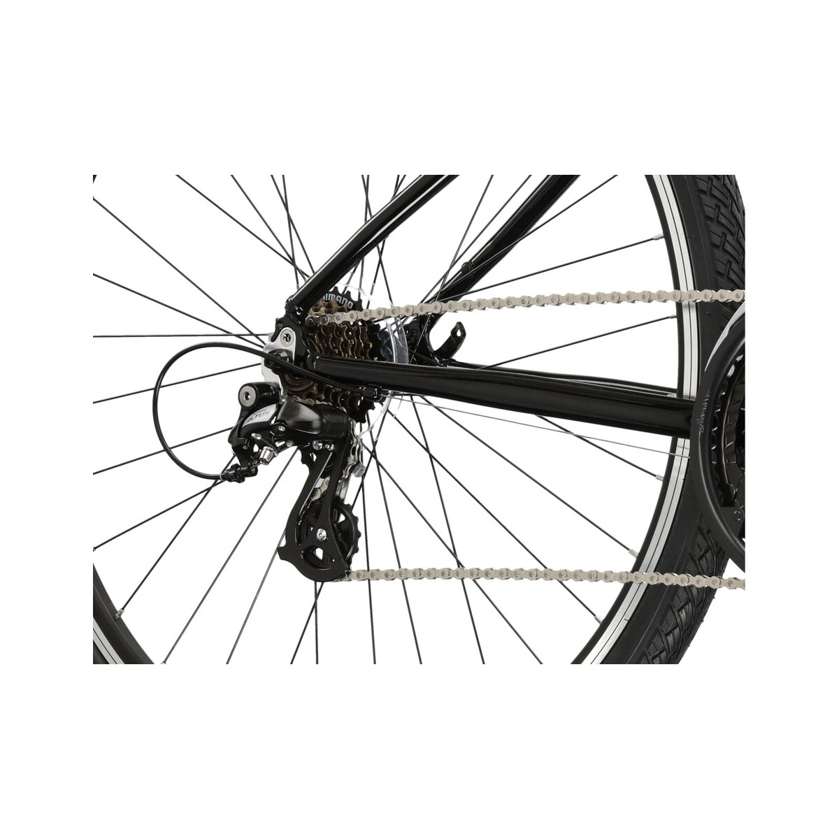 Został on także wyposażony w amortyzowany widelec HL CORP 120E o skoku 30 milimetrów. Dzięki takiemu rozwiązaniu podczas jazdy po nierównościach zachowamy komfort i unikniemy nadmiernego zmęczenia wynikającego z ciągłej pracy naszego ciała na wybojach. Pozwoli ci to dotrzeć na miejsce szybciej i mniej zmęczonym. Kross Evado 2.0 S posiada 28 calowe koła, które pozwolą na sprawne przemieszczanie się zarówno po mieście jak i po leśnych ścieżkach.
