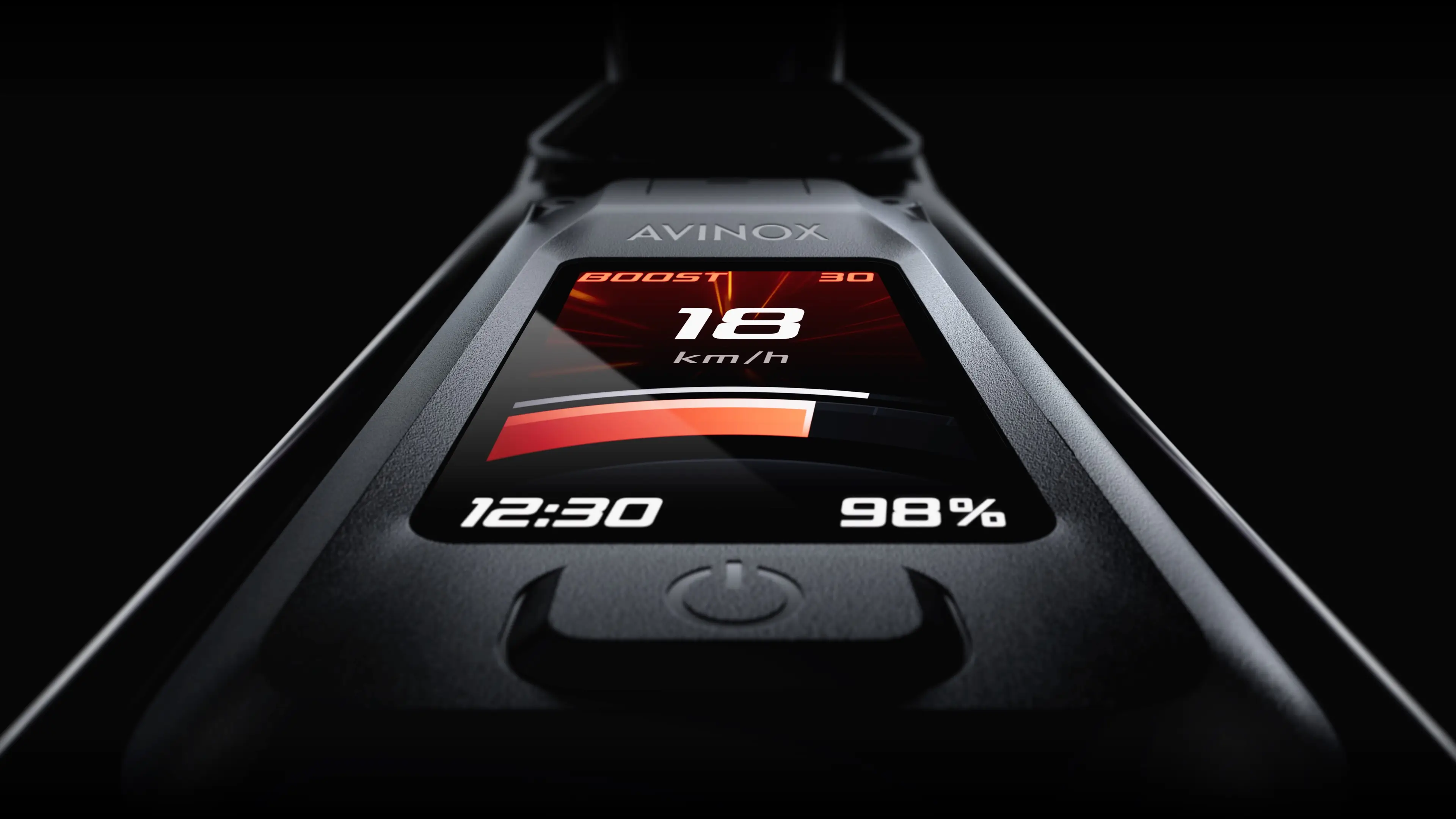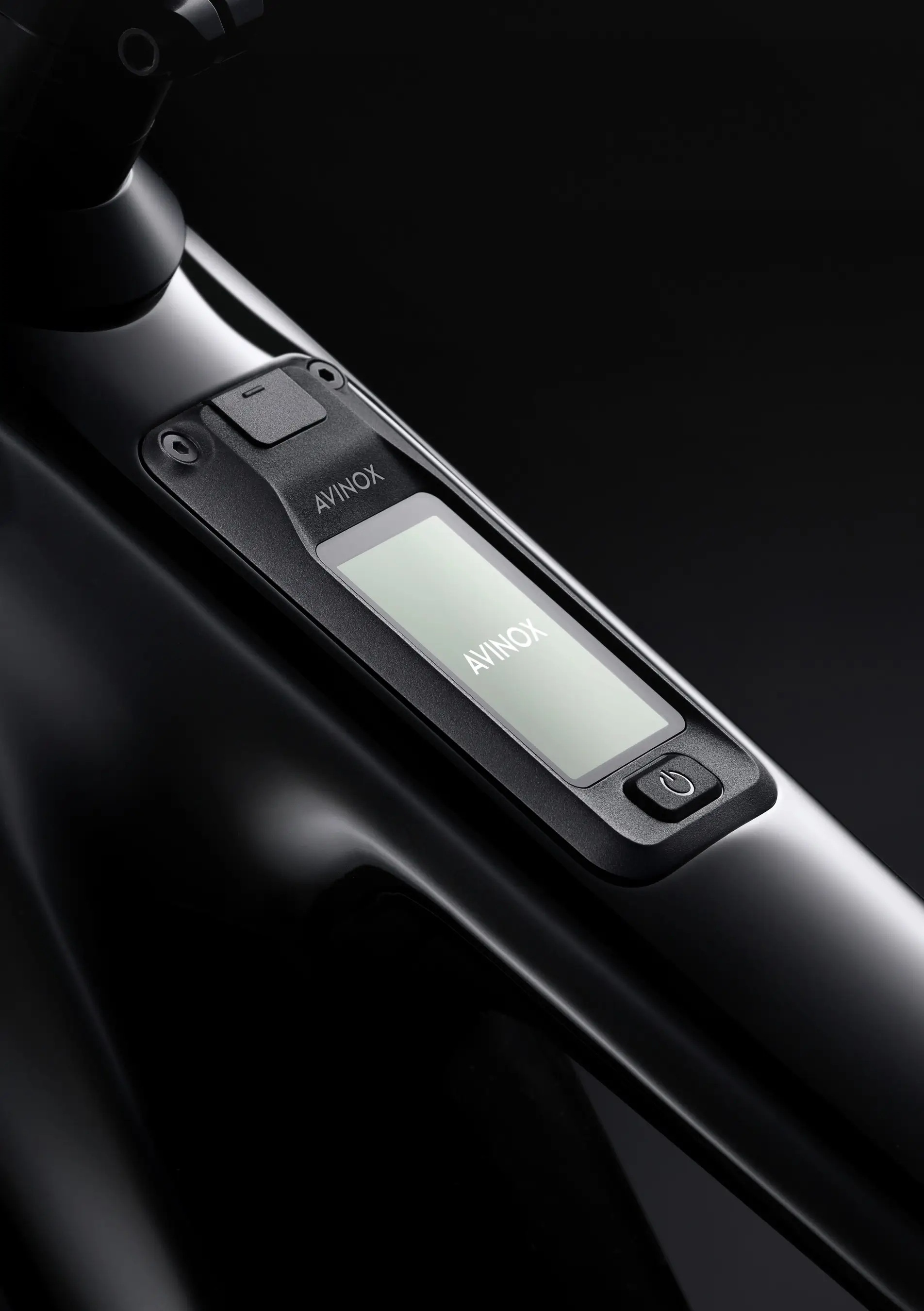 - Wbudowany wyświetlacz, łączność ze smartfonem - 2-calowy ekran dotykowy OLED wyświetla dane dotyczące jazdy w czasie rzeczywistym, takie jak prędkość i kadencja. Użytkownicy mogą również aktywować uwierzytelnianie hasłem i alerty o nietypowych ruchach w aplikacji Avinox.