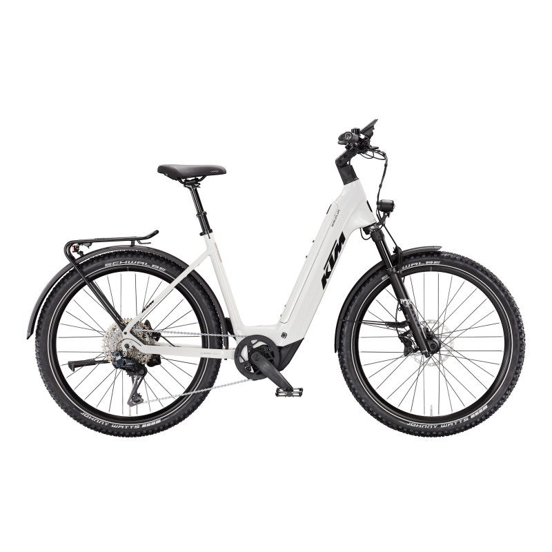 KTM Macina Aera 871 LFC Di2 to luksusowy rower elektryczny typu SUV, który łączy wygodę ramy z niskim przekrokiem ze sportowym charakterem roweru górskiego. Konstrukcja oparta na aluminiowej ramie kryje w sobie najnowszy system napędowy Bosch Smart System z potężną baterią 800 Wh oraz modułem GPS.