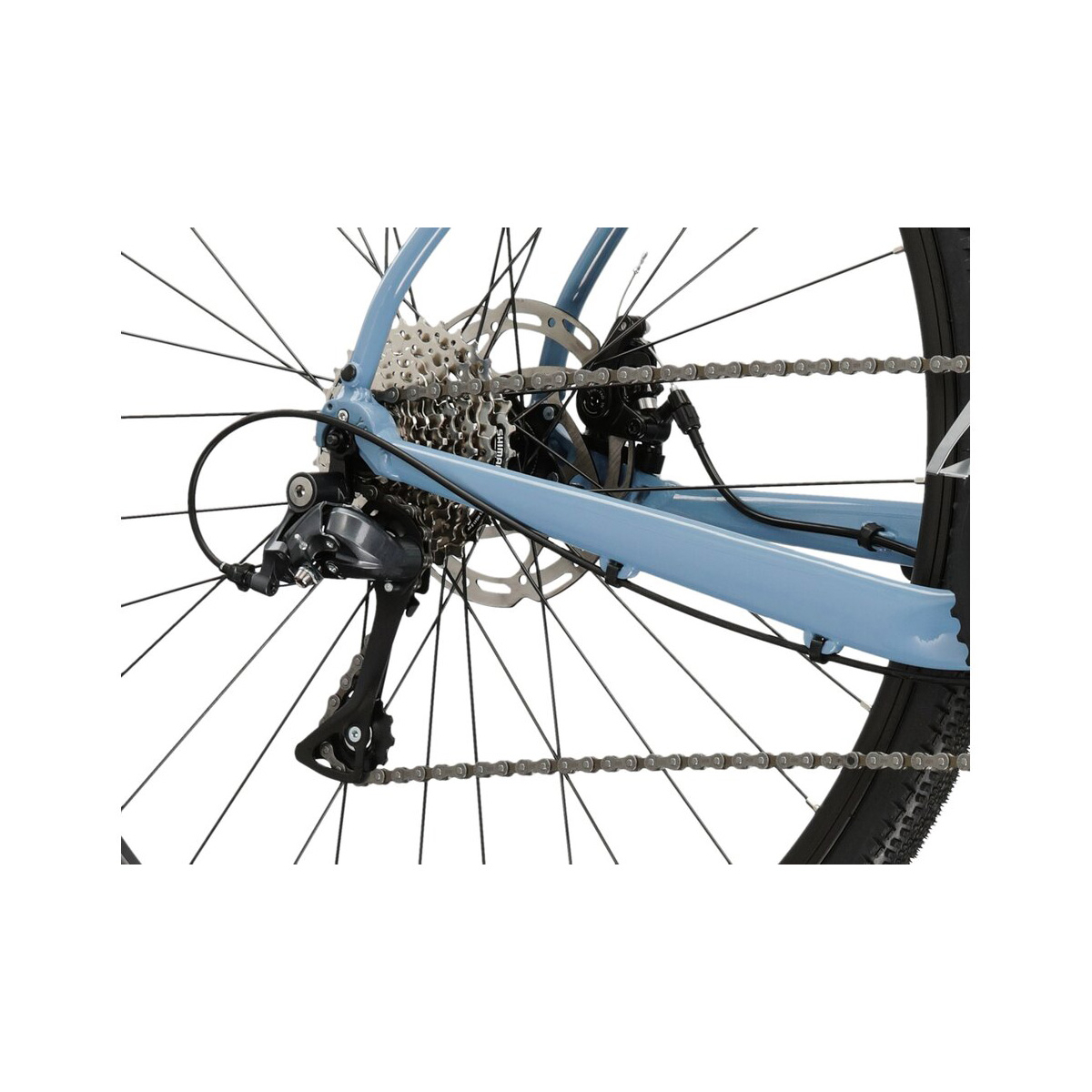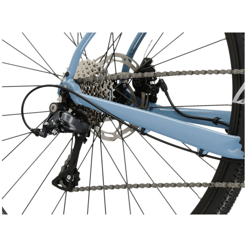 Kross Esker 1.0 został wyposażony w osprzęt, który doskonale sprawdzi się zarówno na asfalcie, jak i w terenie. Dzięki szosowym przerzutkom Shimano Claris oraz korbie FSA Tempo udało się uzyskać napęd, który umożliwi szybką i bezproblemową jazdę w każdych warunkach. Osiem biegów wraz z dwurzędową korbą dają szeroki zakres przełożeń – dzięki nim pojedziesz szybko po płaskim, a także możliwe będzie pokonanie stromego wzniesienia.