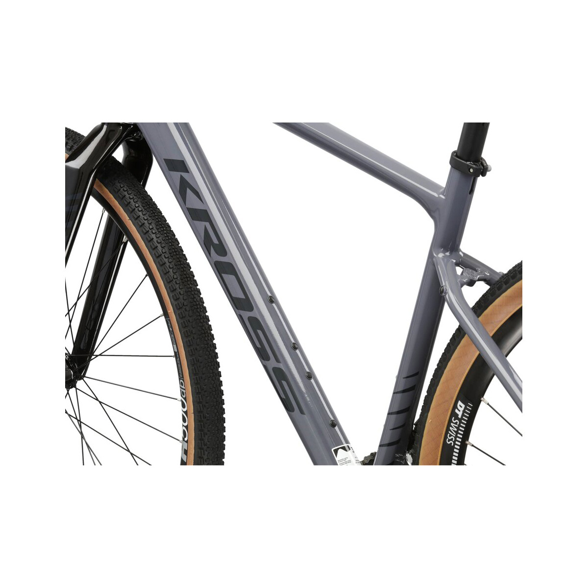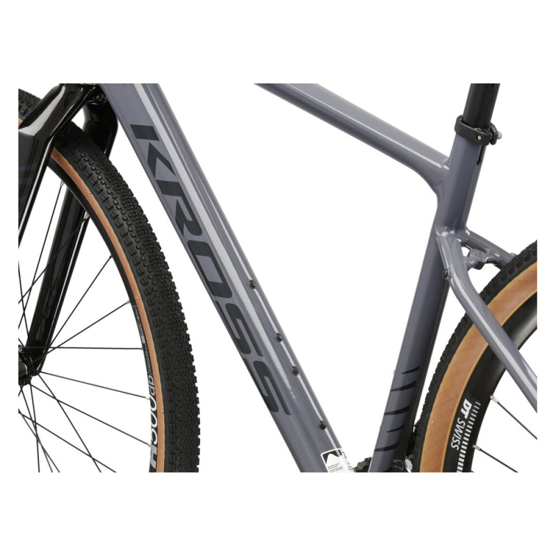 Nowa aluminiowa rama GEN2 posiada szeroki pakiet otworów montażowych do torebek, bagażnika, błotników, koszyków na bidony. Pojawiło się także dedykowane miejsce na montaż podpórki. Zaprojektowany w Kross lekki i sztywny karbonowy widelec posiada wewnętrzne prowadzenie przewodu hamulcowego, do tego może być stosowany zamiennie z gravelowymi amortyzatorami o skoku 30 mm.
