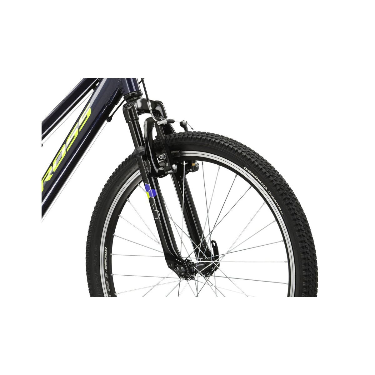 Osprzęt Kross Hexagon JR 1.0 oparto o koncepcję napędu 1x8. Do stworzenia takiego napędu wykorzystano wysokiej jakości komponenty marki Shimano. Pozwoliło to stworzyć napęd z ośmiorzędową kasetą obsługiwaną przez tylną przerzutkę Shimano Tourney TX800. Tak skonstruowany napęd umożliwi dziecku komfortową jazdę w każdym terenie. W rowerze zastosowany został amortyzowany widelec o skoku 40 mm, aby zwiększyć komfort podróży. Został on opracowany specjalnie na potrzeby tego roweru. Kross Hexagon JR 1.0 to 24” calowe koła, na które założono wysokiej klasy opony o średnicy 1,95 cala, zapewniące przewidywalne zachowanie roweru zarówno w mieście, jak i w terenie. To także hamulce v-brake odpowiadające za bezpieczne hamowanie oraz bezawaryjną obsługę.
