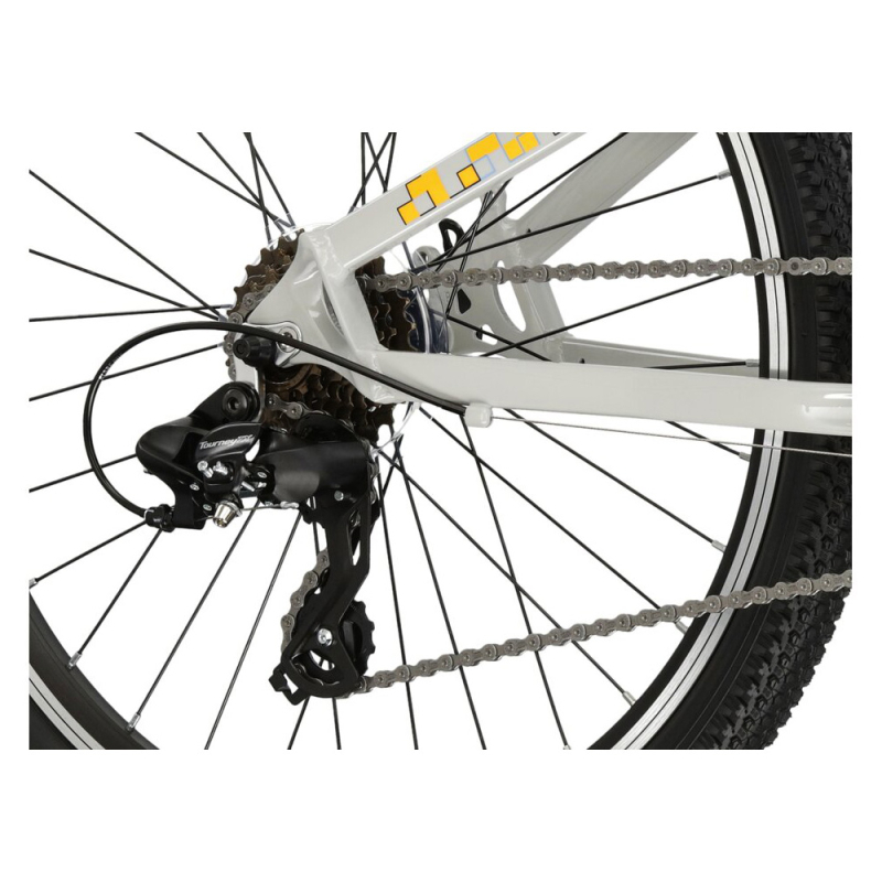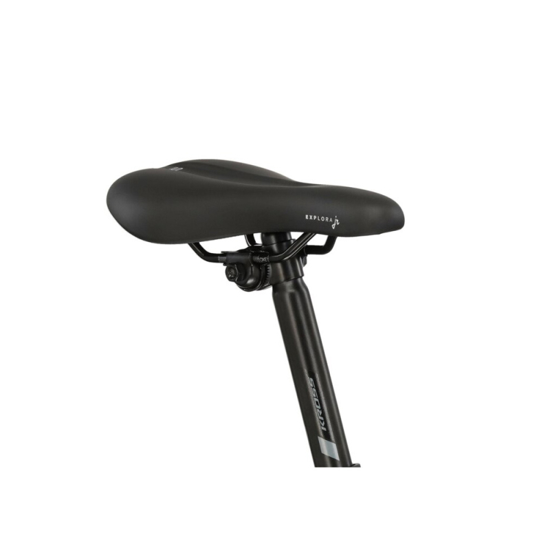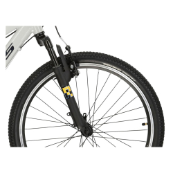 Amortyzowany widelec ze skokiem 50 mm zapewnia wysoką kulturę pracy oraz doskonałe tłumienie wibracji powstających podczas jazdy po nierównej i wyboistej nawierzchni. Obniżony przekrok ramy zapewnia, że wsiadania oraz zsiadanie z roweru nie będzie stanowiło żadnego problemu.