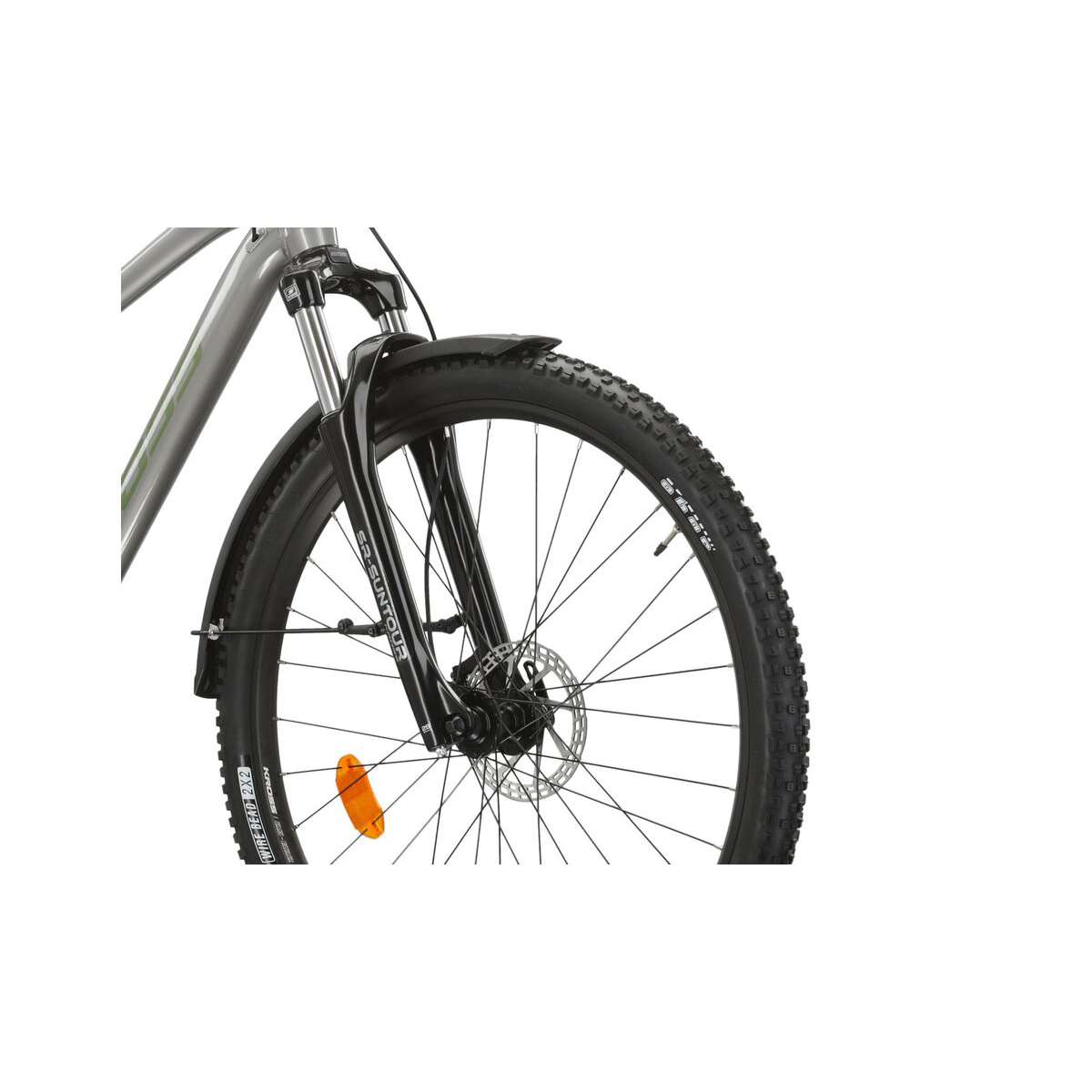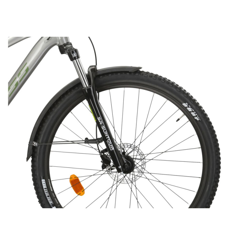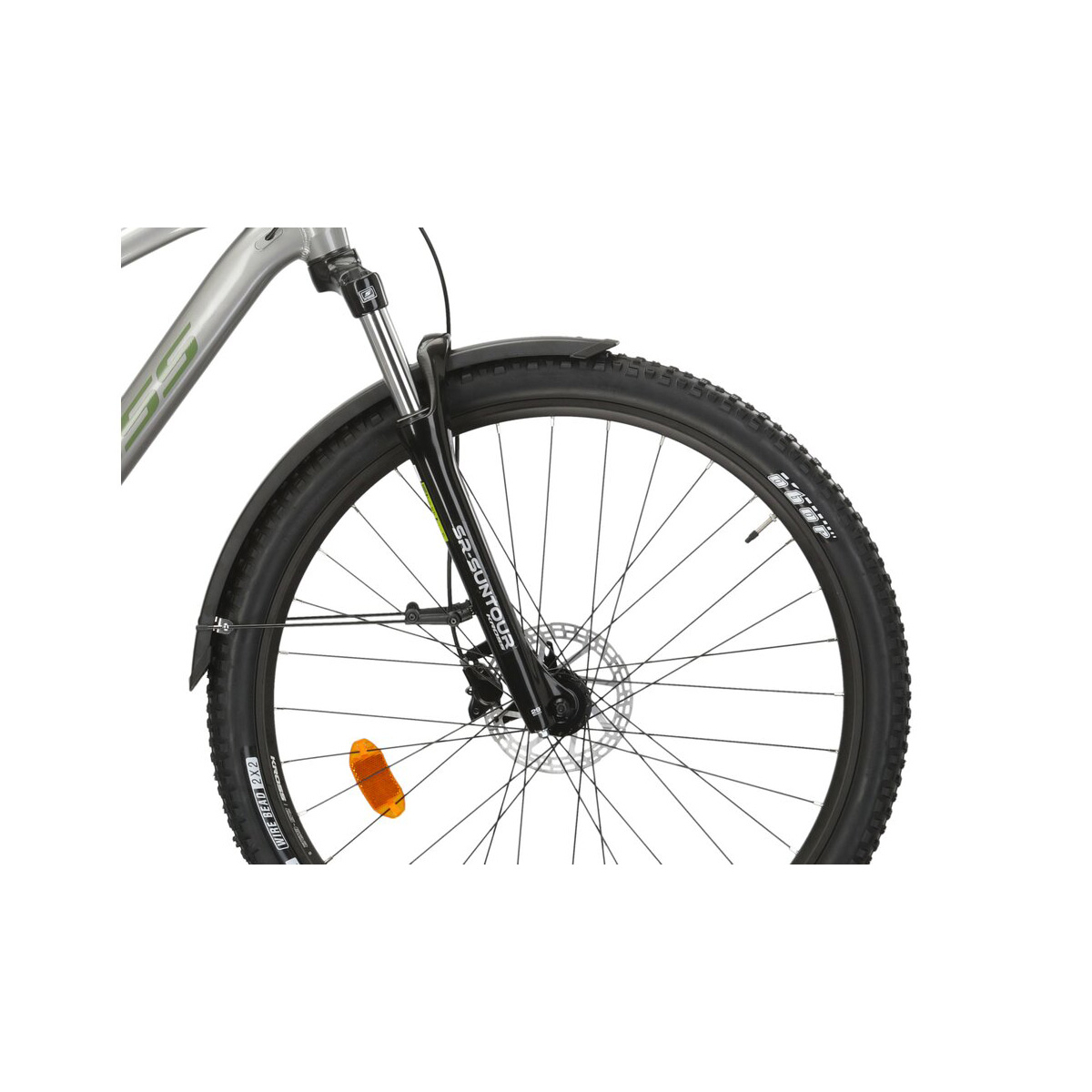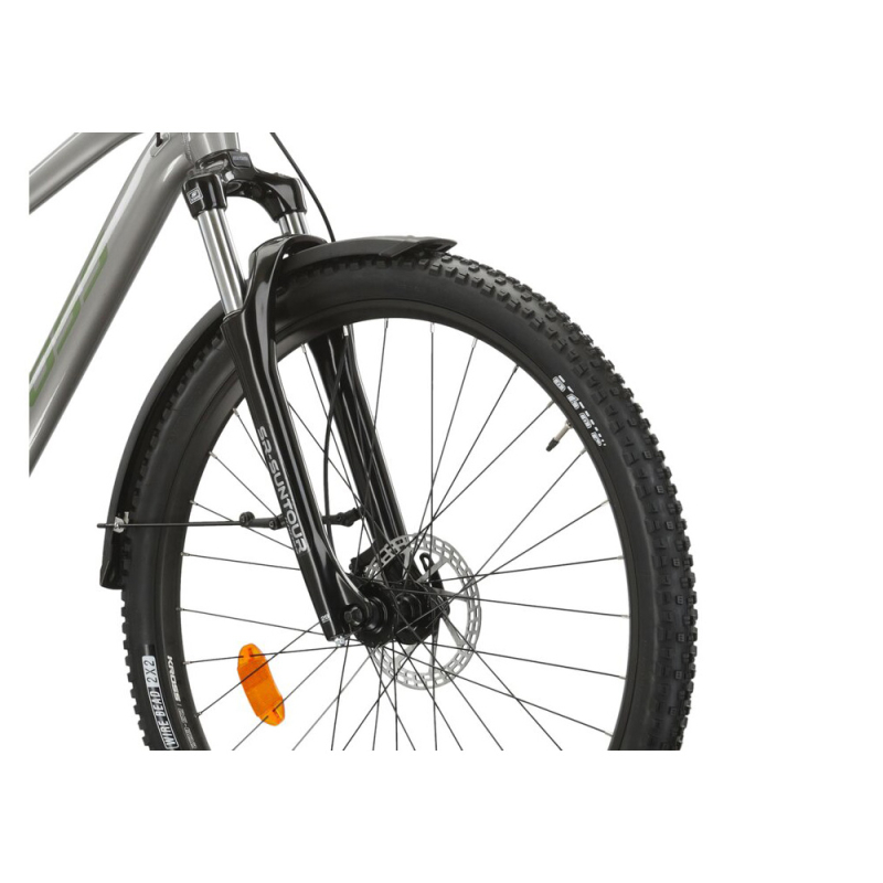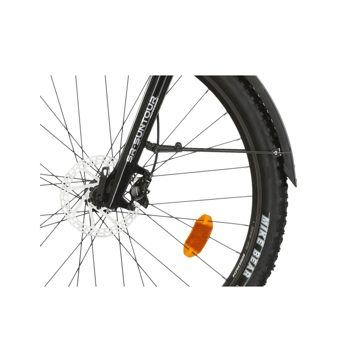 Amortyzowany widelec SR Suntour ze skokiem 100 mm zapewnia wysoką kulturę pracy oraz doskonałe tłumienie wibracji powstających podczas jazdy po nierównej i wyboistej nawierzchni.