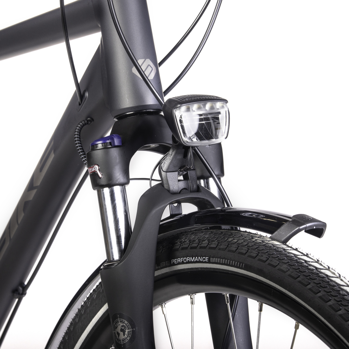 Model Atlantis charakteryzuje się bardzo dobrym wyposażeniem, dzięki któremu rower jest w pełni gotowy do jazdy od razu po zakupie. Znajdziemy w nim błotniki, bagażnik, oświetlenie zasilane za pomocą dynamo w piaście, a także pompkę, która ma swoje miejsce na bagażniku. Propozycja marki Unibike została wyposażona w napęd Shimano Cues oferujący 20 biegów, dzięki czemu sprawdzi się w każdym terenie. O bezpieczeństwo dbają hydrauliczne hamulce tarczowe Shimano. Komfort jazdy zapewnia amortyzowany widelec z blokadą skoku oraz amortyzowana sztyca. Unibike Atlantis LDS to świetna propozycja do codziennego komfortowego przemieszczania się.