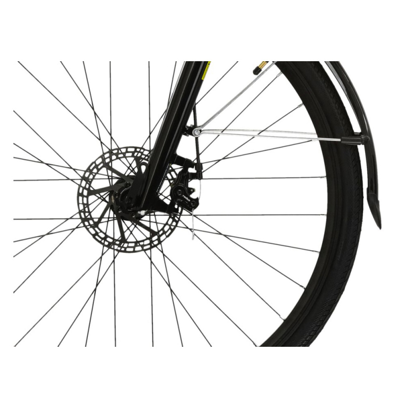Kross Trans 3.0 posiada także amortyzowany widelec SR Suntour NEX, który dzięki skoku wynoszącemu 63 milimetry ułatwi jazdę po nierównościach oraz zapewni komfort w trakcie jazdy po nawierzchni, która lata świetności ma już dawno za sobą. Miejskie krawężniki już nigdy nie będą stanowić dla Ciebie wyzwania.