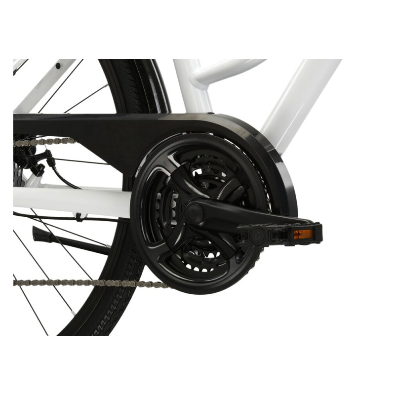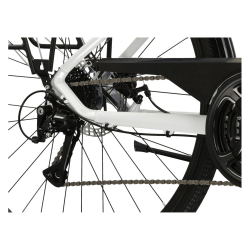 W Kross Trans 3.0 zamontowano wysokiej jakości hamulce, które zapewnią ci dużą siłę hamowania zarówno na asfalcie, jak i na leśnej ścieżce. Opony o szerokości 1,5” pozwalają na stosowanie roweru w praktycznie każdych warunkach atmosferycznych, a także zapewnią długą eksploatację. Ponadto, wyposażony jest on w wysokiej jakości napęd składający się z komponentów Shimano. Dzięki zastosowaniu tylnej przerzutki Shimano Acera oraz przedniej Tourney udało się uzyskać aż 21 przełożeń, które ułatwią pokonywanie stromych wzniesień oraz rozwinięcie wysokiej prędkości na płaskich odcinkach drogi.