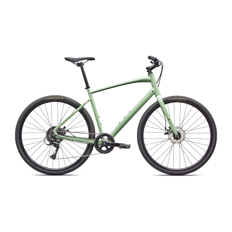 - Specialized A1 Premium Aluminum, Fitness Geometry, butted tubing, internal cable routing, flat-mount disc, quick-release, Plug + Play rack/fender mounts