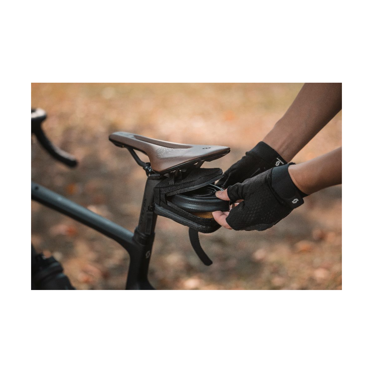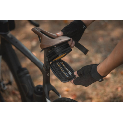 T-TC2327BUltra kompaktowa torba podsiodłowa jest schowana pod siodłem za pomocą rzepowego paska. Wbudowana tkanina antypoślizgowa zapewnia bezpieczeństwo montażu.