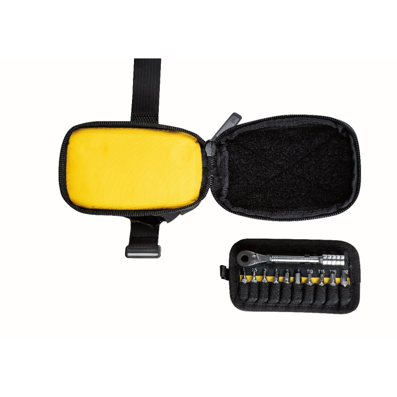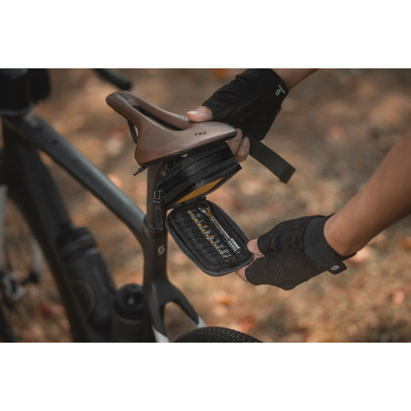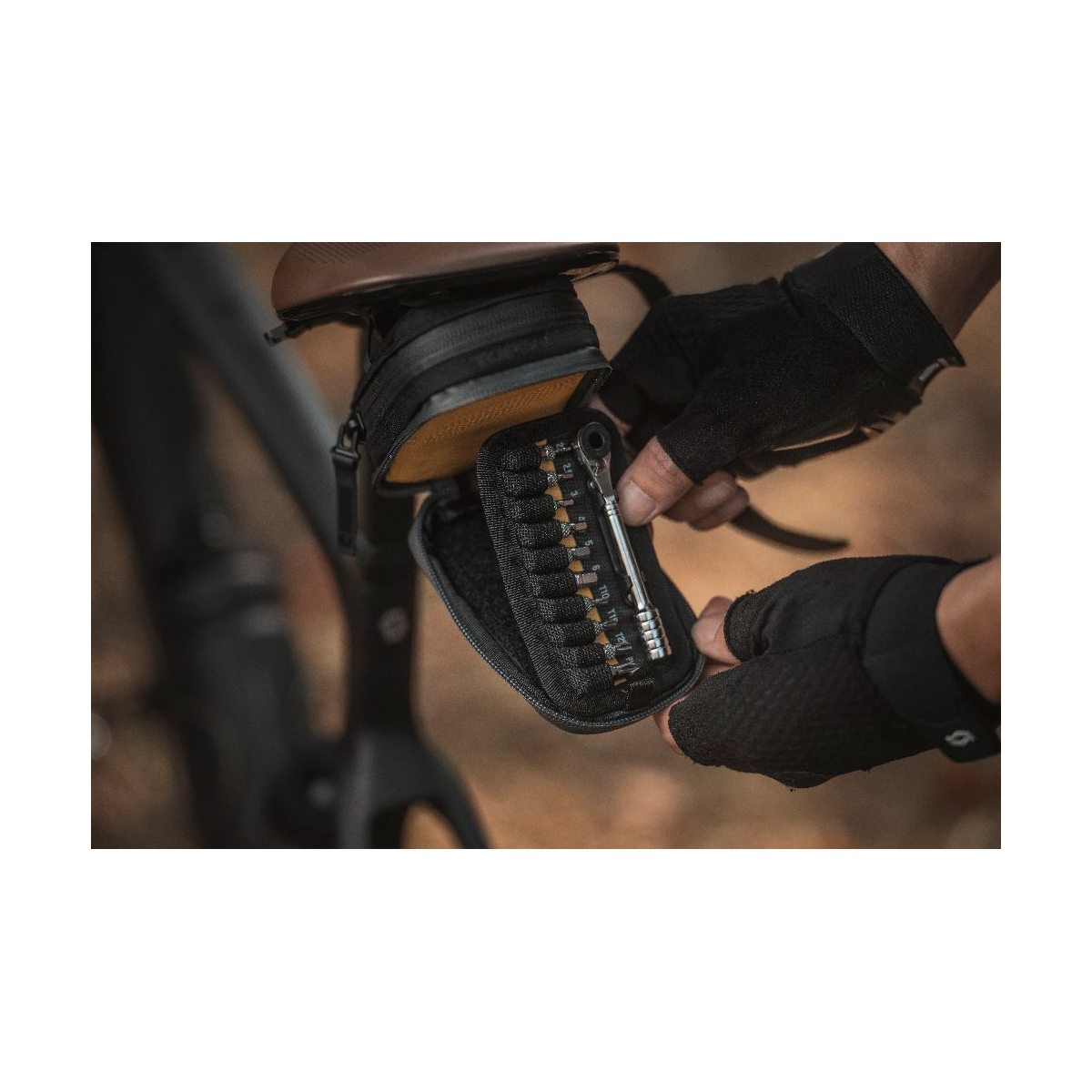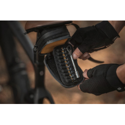 Posiada ukrytą komorę na narzędzia, która oddziela narzędzia i inne elementy dla lepszej organizacji. Zawiera narzędzie z grzechotką i 10 bitów więc nie zapomnisz swoich narzędzi podczas jazdy na rowerze.