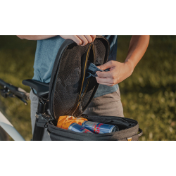Uformowana ze sztywnej pianki EVA i poliestru o gęstości 600 denierów dla uzyskania eleganckiego, aerodynamicznego kształtu, posiada dzieloną główną komorę oraz jedną zapinana na zamek. Lekka aluminiowa rama exo jest wyposażona w szybko zwalniany uchwyt, który mocuje się do sztyc siodełka o wymiarach 24,5 - 34,9 mm. Inne funkcje to wygodny uchwyt do przenoszenia i pasek odblaskowy 3M™ oraz klips RedLite® dla dodatkowego bezpieczeństwa.
