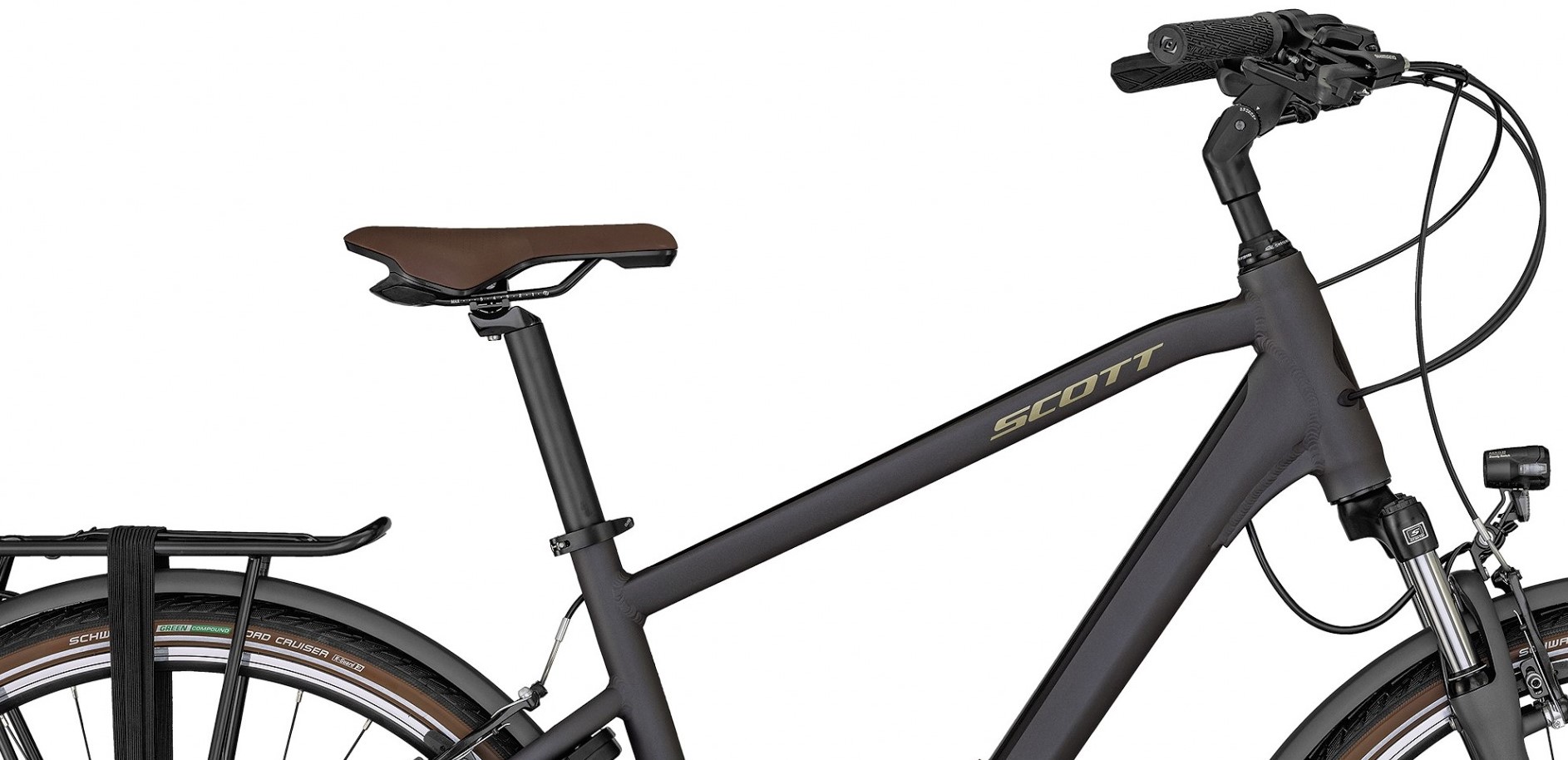 SCOTT SUB Comfort 20 charakteryzuje się wygodną geometrią przeznaczoną do codziennego użytku. Dzięki napędowi Shimano 21 biegowemu i niestandardowemu bagażnikowi Racktime, który jest kompatybilny z akcesoriami Snap-it, ten rower ma wszystko, co potrzebne do wędrówek.